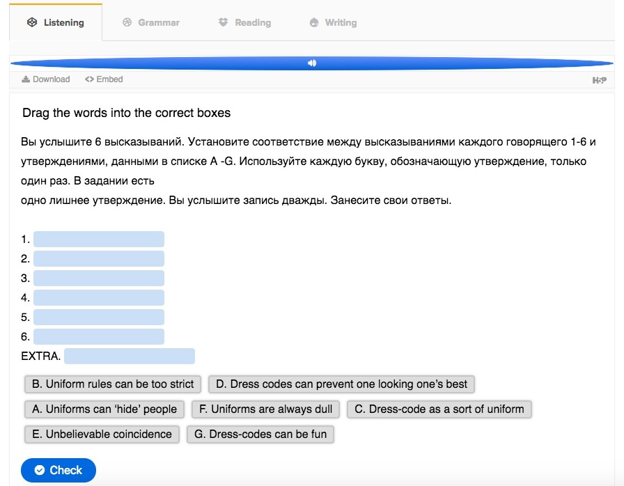 Правда плохо еще воспринимаю текст на слух и когда быстро проговаривают текст, тоже не всегда успеваю повторять. Нравится работа с карточками для лучшего запоминания слов.